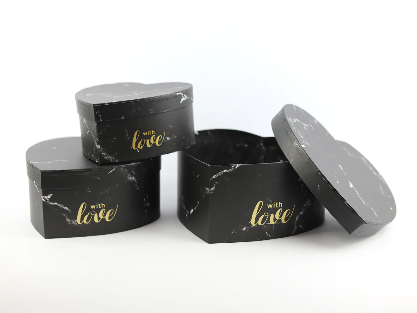 SET DE 3 CAIXAS CORAÇÃO PRETAS